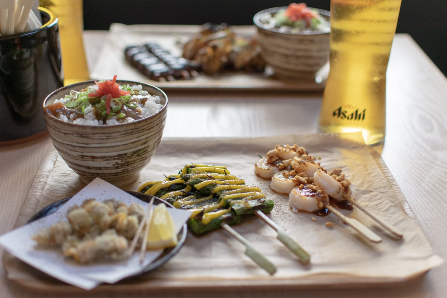 Kushi-ya is a vibrant Japanese hideaway known for its friendly atmosphere, great music, and affordable drinks.
